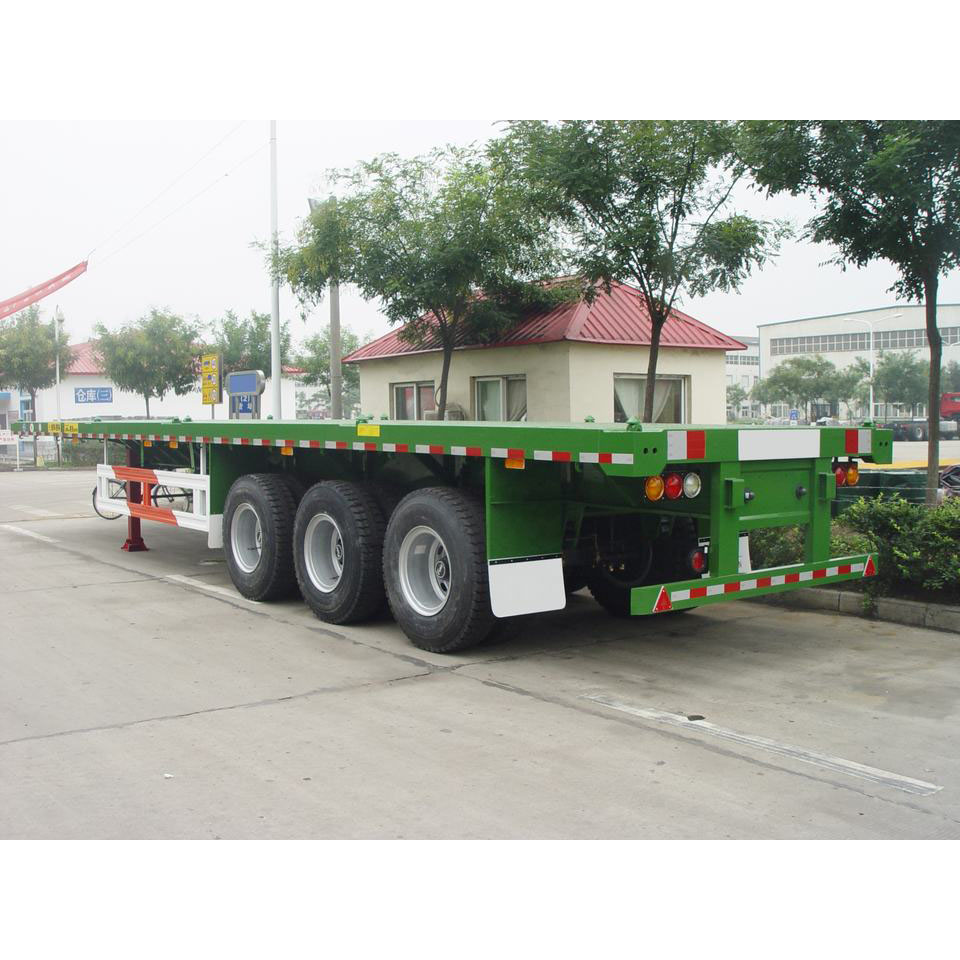 A Fumin 40ft 3-tengelyes, síkképes félkocsi-pótkocsi egy olyan típusú pótkocsi, amelyet kifejezetten rakománykonténerek szállítására terveztek. Íme néhány kulcsfontosságú jellemző és megfontolás:
